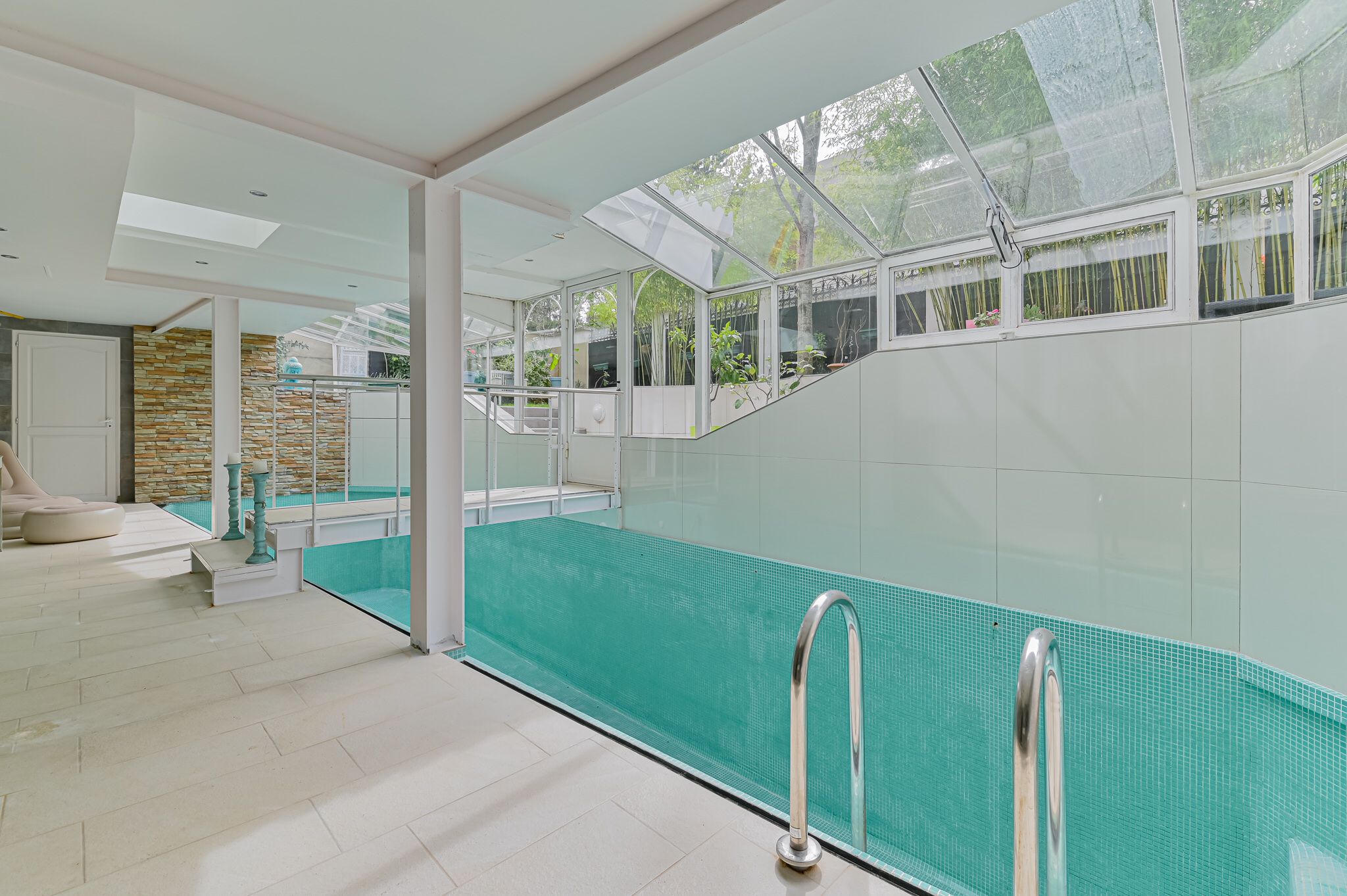 Au sous-sol, vous serez émerveillés par la piscine intérieure illuminée, sa cuisine d’été et sa grande salle de sport de quoi surprendre vos invités !