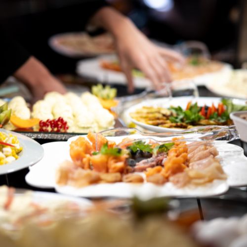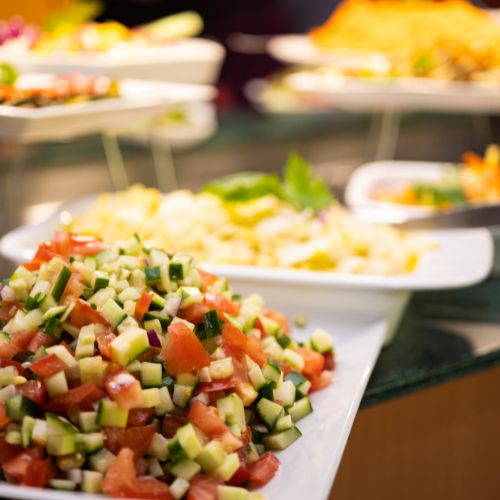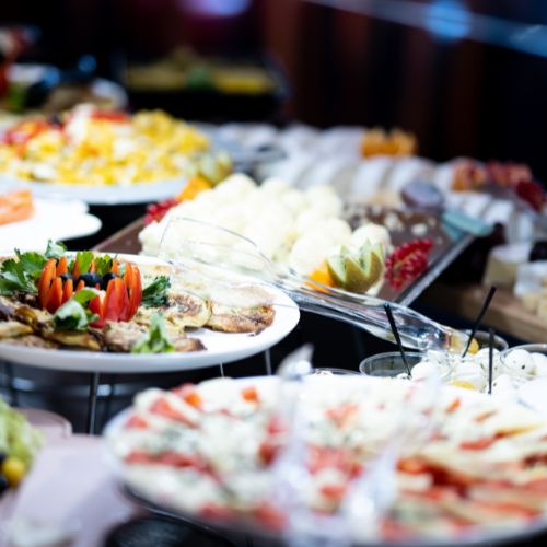 Dîner sous forme de buffet, avec de succulents desserts préparés par nos chefs cuisiniers et pâtissiers, de même que des spécialités pour tous les goûts.