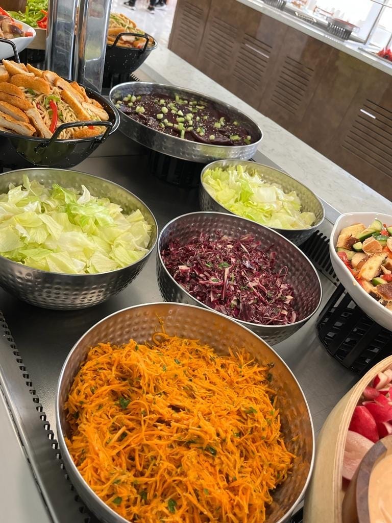 Glatt Kosher sous la stricte surveillance du Rabbin Dov Lellouche. Une cuisine raffinée, servie sous forme de buffet ou à table. Midi et soir, les repas sont accompagnés de vins, de sodas… Chabbat et jours de fêtes, nous vous proposons également un kiddouch savoureux. L’après-midi, vous dégusterez nos goûters accompagnés de boissons chaudes.